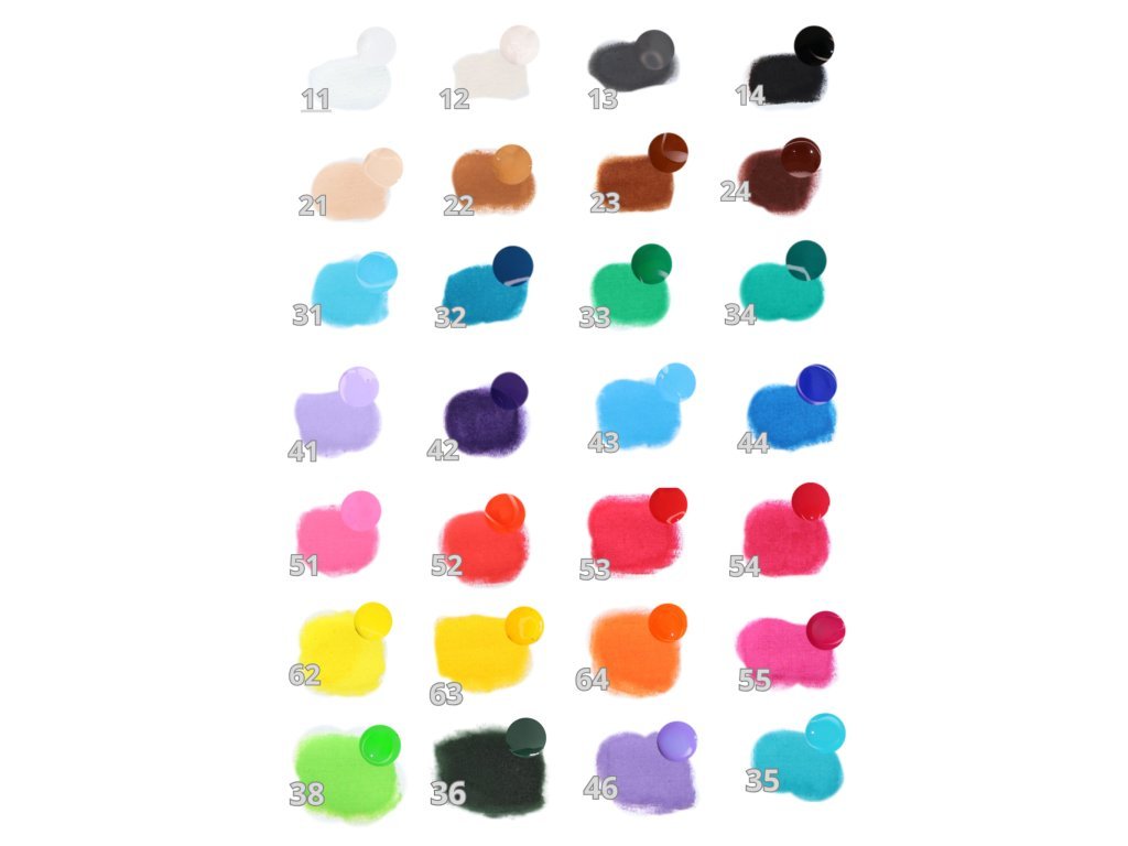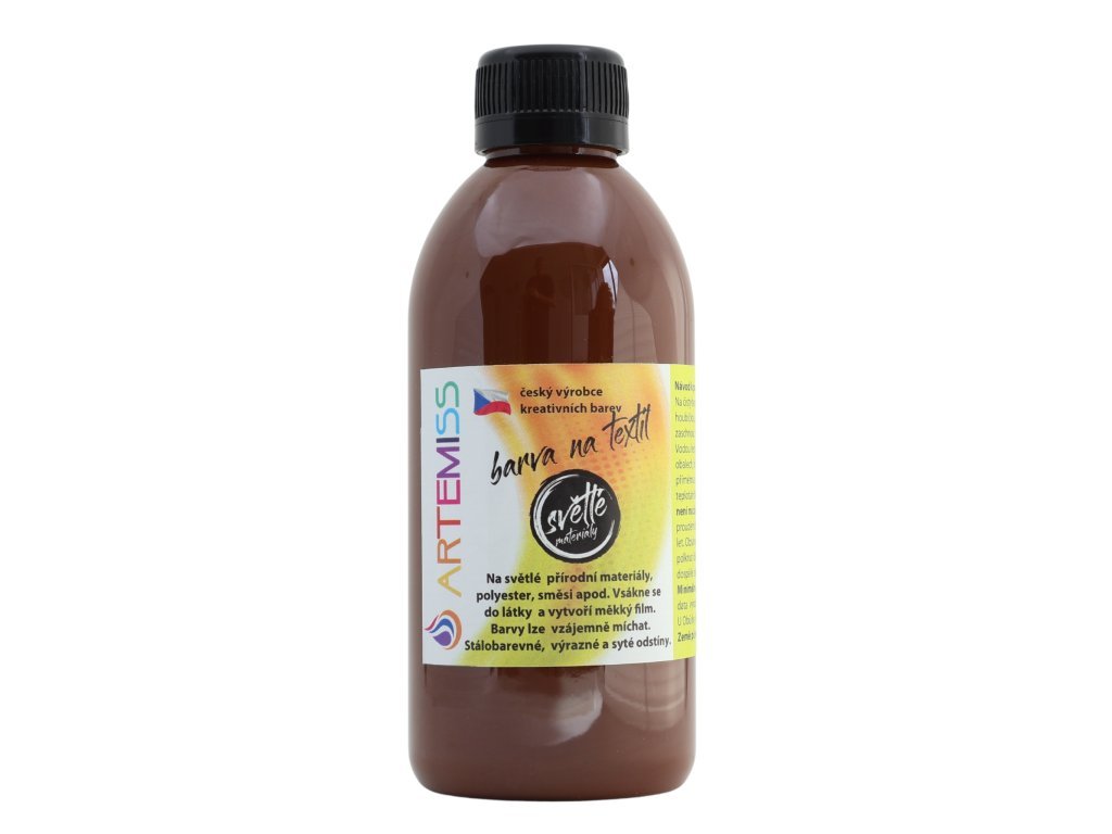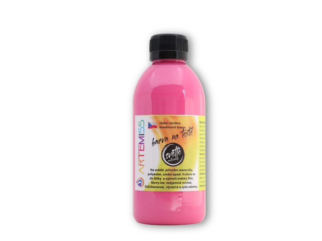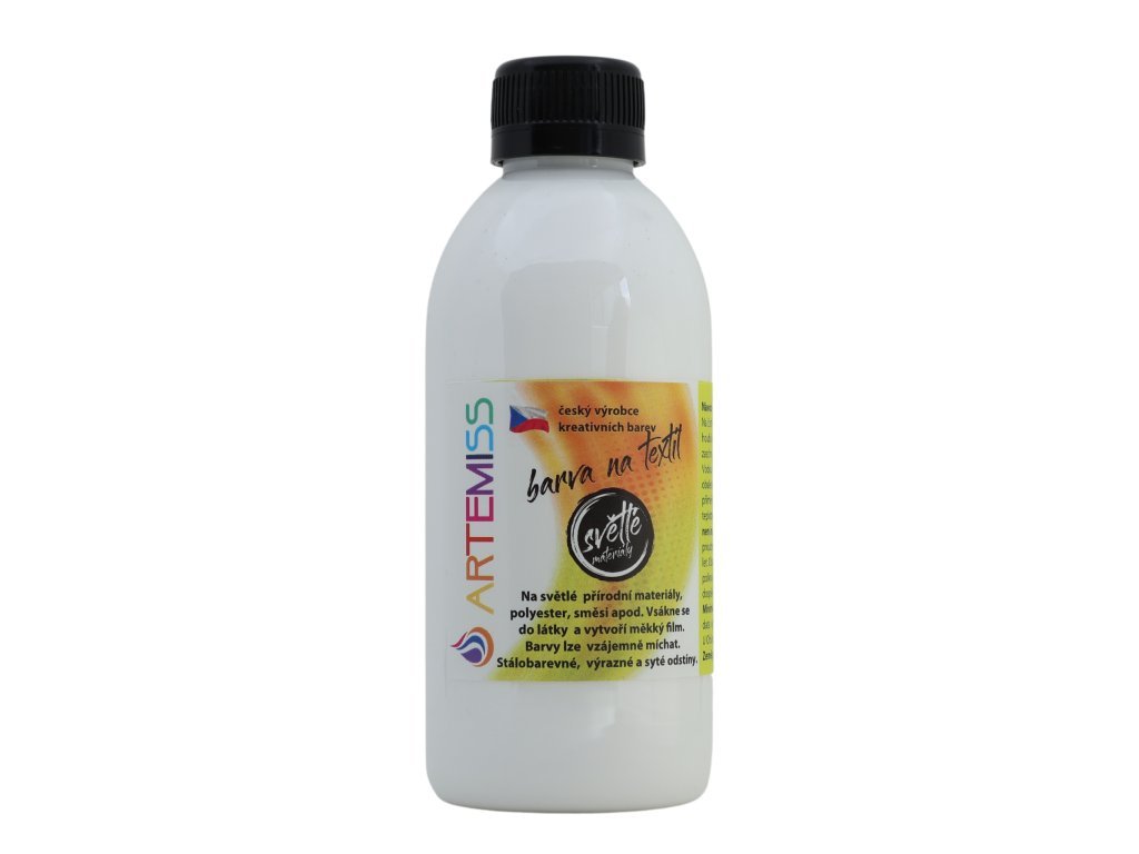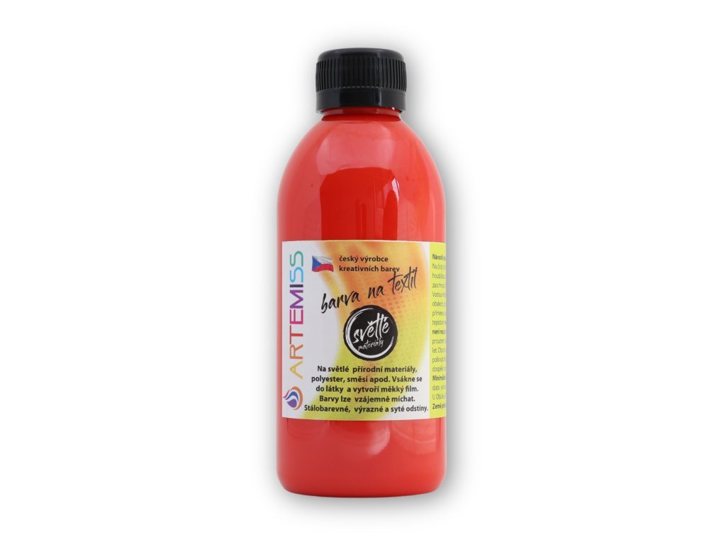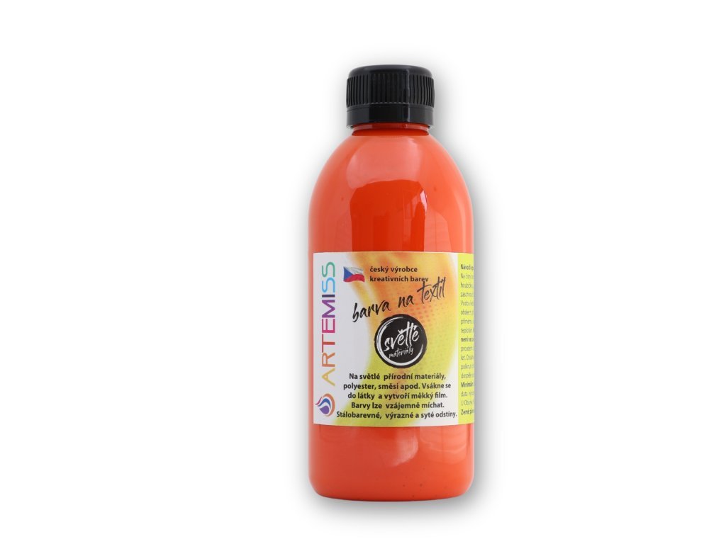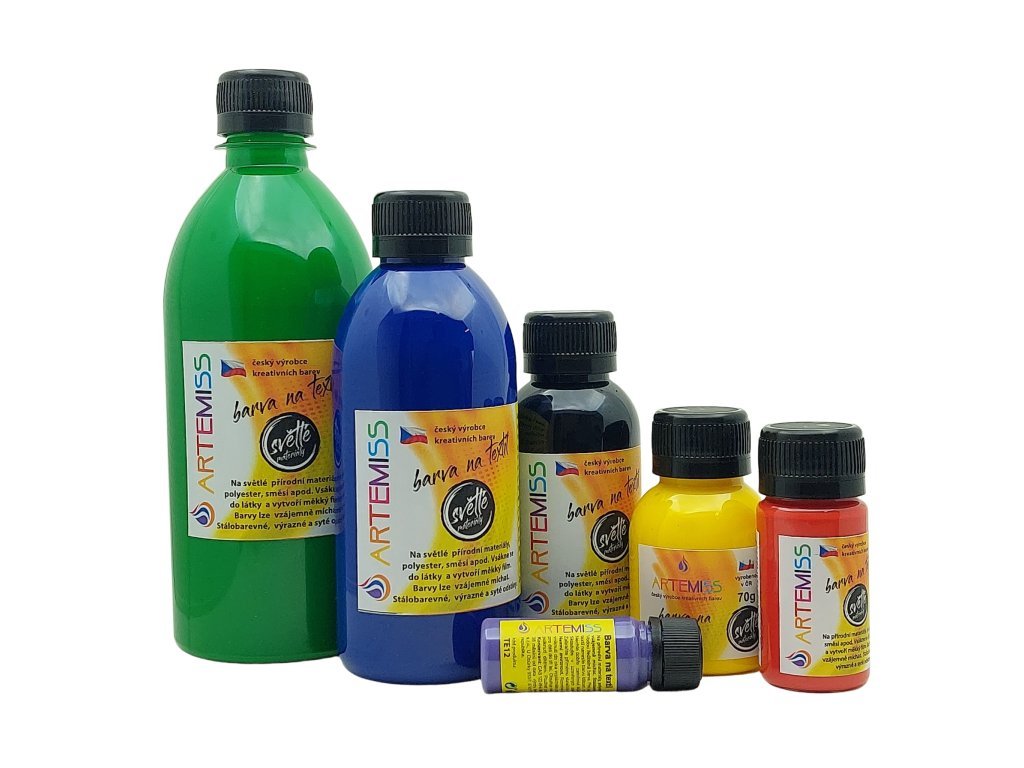 Farba je určená predovšetkým na svetlé materiály. Na zdobenie tmavých a pestrých podkladov používajte farbu na tmavý textil. Rozdiel medzi farbou na svetlý a tmavý textil je ten, že farba na svetlý textil sa vsaje do vlákien, oproti tomu farba na tmavý textil zostáva viac na povrchu. Z tohto dôvodu farba na svetlý textil toľko nekryje. Jej výhodou sú žiarivé a výrazné odtiene. Jednoducho povedané, zložka, ktorá pomáha farbám na tmavý textil „zamaskovať" podklad, spôsobuje na svetlom textile menej výrazné odtiene.