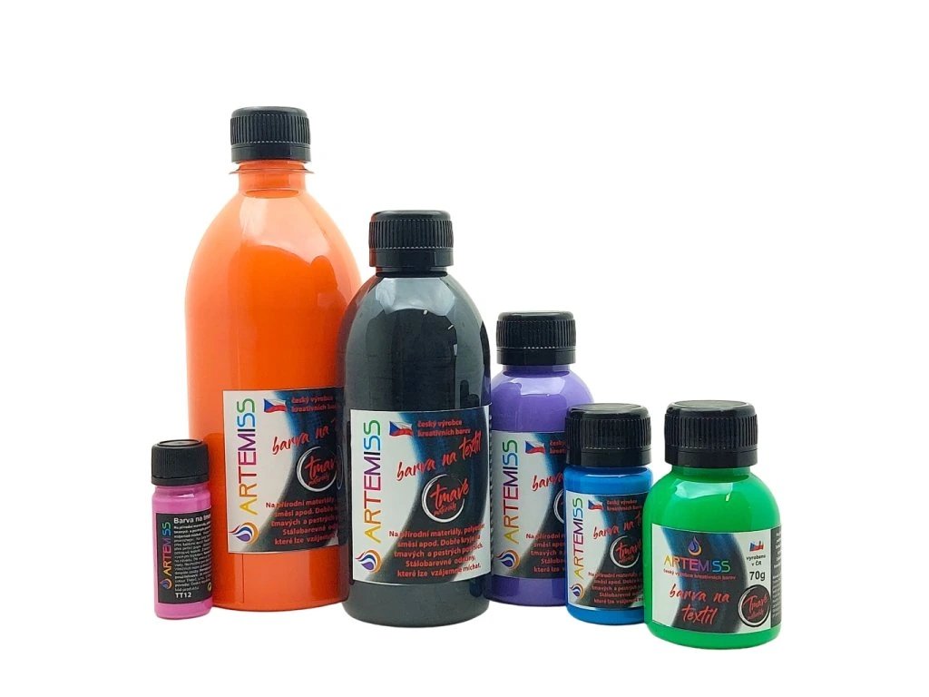 Farba je určená na maľovanie tmavých a výrazne sfarbených podkladov. Rozdiel medzi farbami na tmavý a svetlý textil je ten, že farba na tmavý textil zostáva viac na povrchu a naopak farba na svetlý textil sa vsiakne do vlákien. Z toho dôvodu farba na svetlý textil toľko nekryje. Jednoducho povedané zložka, ktorá pomáha farbám na tmavý textil ,,zamaskovať" podklad, spôsobuje na svetlom textile menej výrazné odtiene. Na svetlé materiály používajte farbu na svetlý textil.