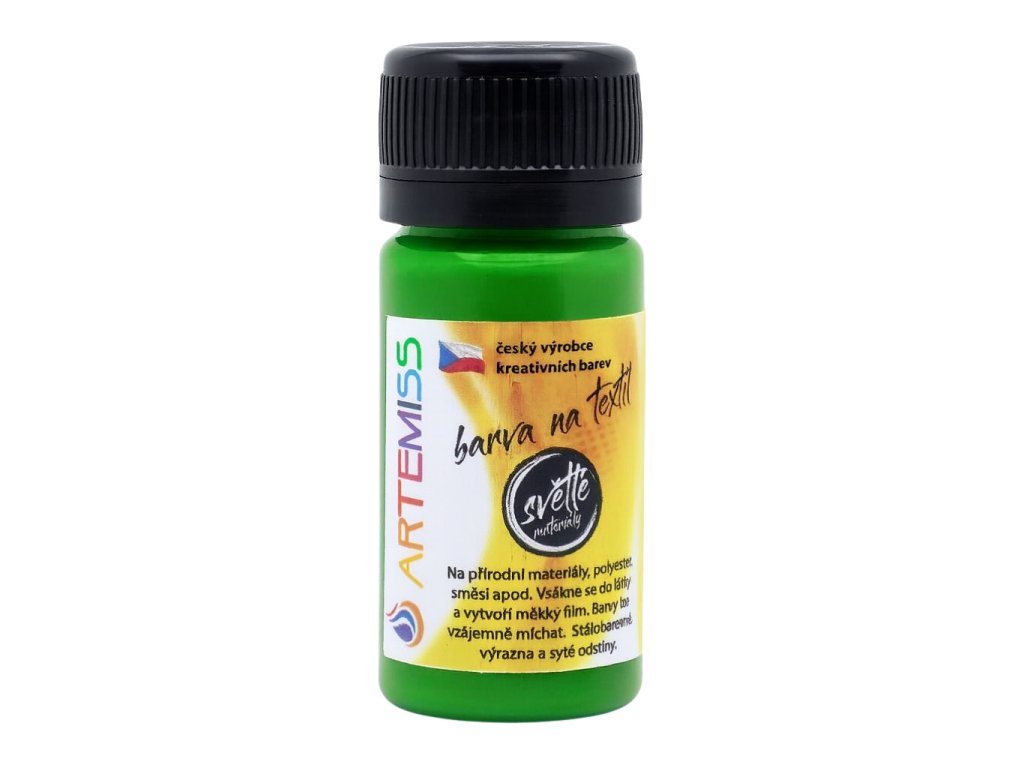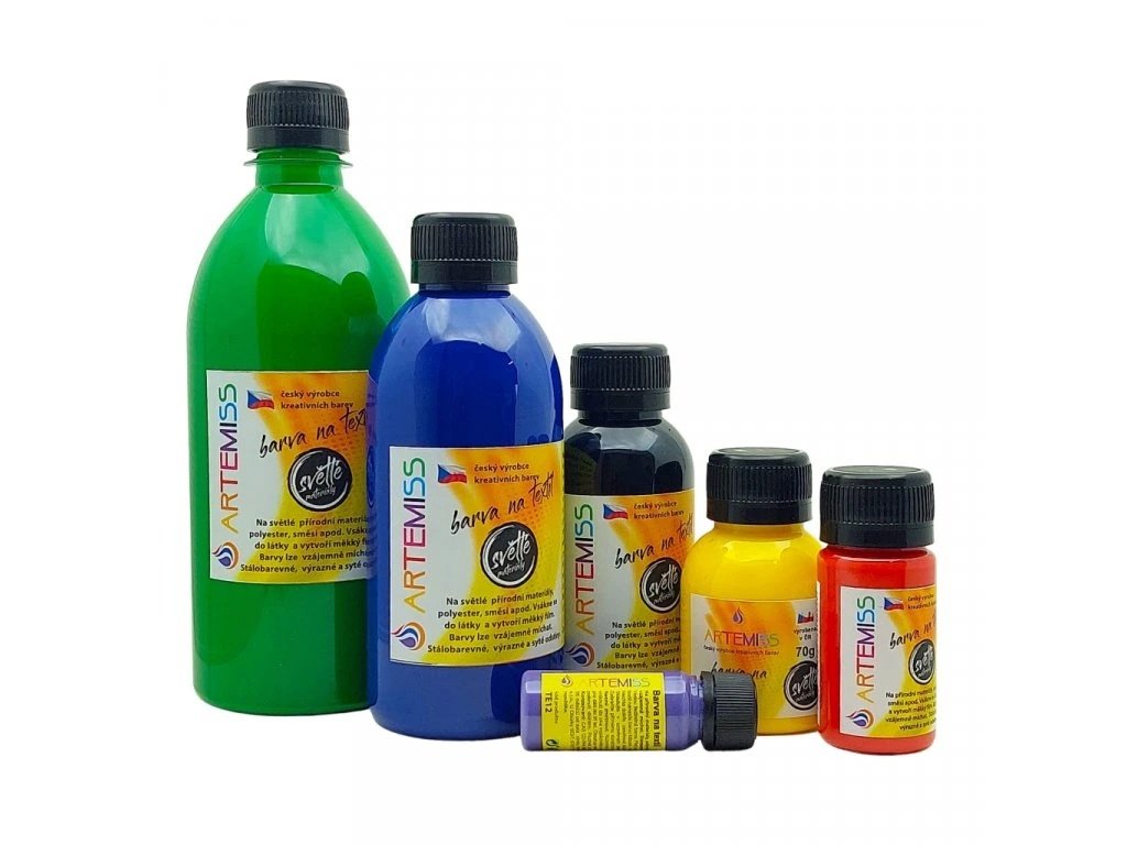Farba na svetlý textil je určená na väčšinu prírodných materiálov, polyester a zmesi. Pokiaľ nie ste si istý zložením materiálu, vyskúšajte farbu na kúsku látky.