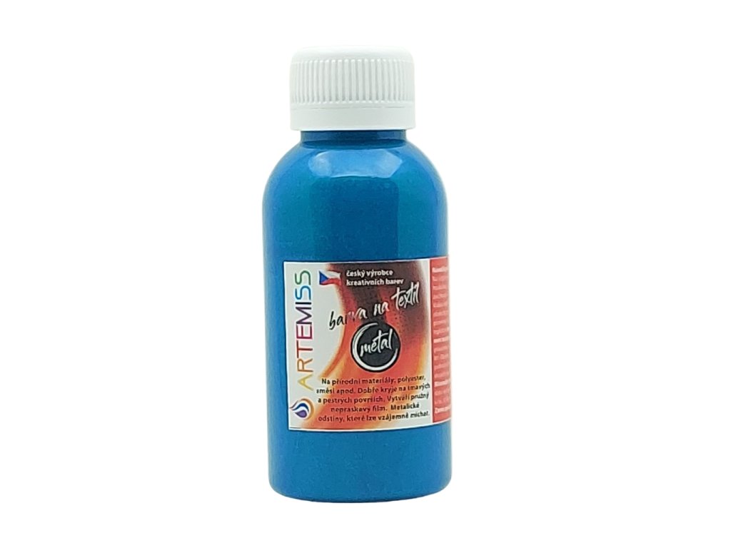 Farba obsahuje špeciálny metalický pigment tvorený drobnými čiastočkami, a preto kryje lepšie než klasická farba na textil, ale menej než farby na tmavý textil.