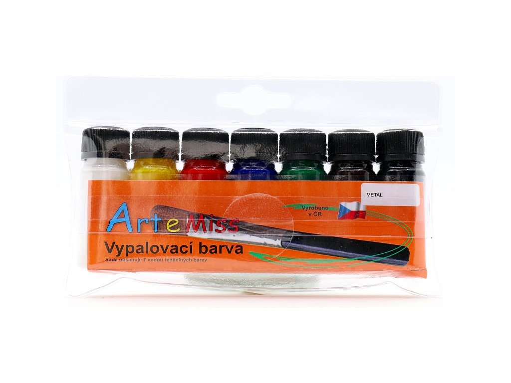 Vypaľovacia farba na porcelán, sklo, keramiku a nenasiakavé materiály, ktoré je možné zahriať na 150 stupňov. Vodou riediteľná. Farba obsahuje malé čiastočky metalického pigmentu, ktorý vytvára efekt metalického náteru (podobný efekt ako u metalíz na aute). Veľmi dobre prekryje aj tmavé podklady - nemusí sa podtierať bielou farbou. Sada obsahuje: 7 farieb po 12g (biela, žltá, červená, modrá, zelená, hnedá, čierna). Návod na použitie:- na čistý a odmastený povrch nanesieme farbu a necháme hodinu zaschnúť,- odtiene môžeme vzájomne miešať,- rúru predhrejeme na 150 stupňov (teplotu starostlivo nastavíme, aby farby nezhnedli), vložíme dekorovaný predmet a 30 minút vypaľujeme, - u väčších predmetov, alebo vyššej vrstve farby predĺžime dobu vypaľovania cca o tretinu. necháme vychladnúť, najlepšie v rúre - hrozí popálenie horúcim predmetom,- obrázok môžeme umývať v umývačke alebo bežne s riadom, len musíme dať pozor, aby sme ho ostrými predmetmi nepoškriabali. Nepoužívajte drôtenku, ani abrazívne čistiace prostriedky. Skladovanie farieb:farbu skladujte v uzavretom obale, chráňte pred mrazom, vysokými teplotami a priamym slnečný žiarením.